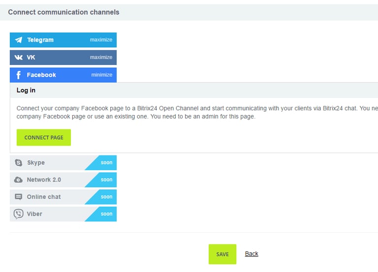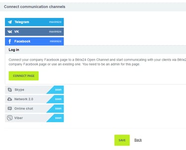 Open channels link the most widely used social networks and messaging platforms with Bitrix24 CRM. Messages from clients on Facebook, Telegram, Skype, and other services are allocated to Bitrix24 CRM users based on predefined rules. Although your staff may utilize Bitrix24 to interact with clients in real-time, clients will receive all responses within the social network or messaging platform where they first reached out. Open channels are compatible with mobile, desktop, and web applications of Bitrix24.