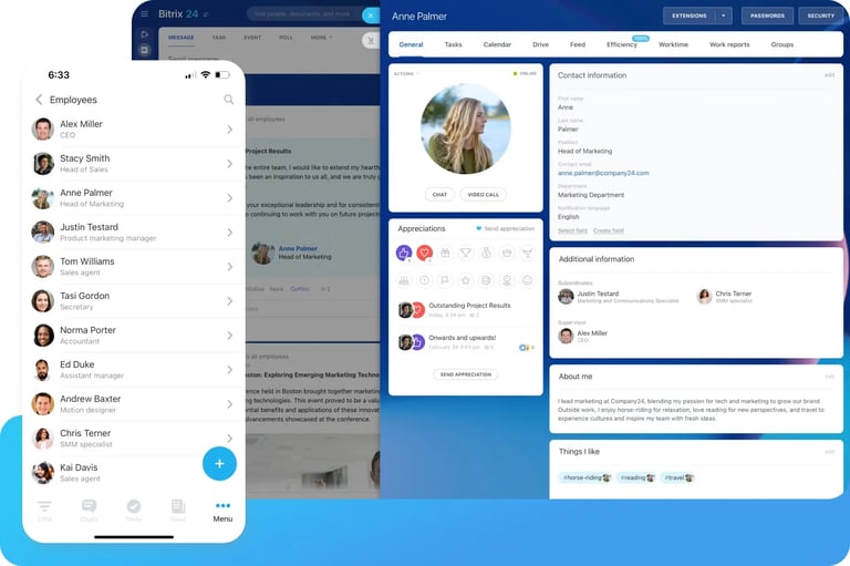 Dive into the corporate portal with excitement, just like you would on your favorite social network! Team up on amazing initiatives and chat about everything in real-time. Stay connected, manage your tasks, documents, and time seamlessly with the tools you already love. Every resource you could dream of is at your fingertips - check out the interactive "Activity Stream" for a vibrant experience!